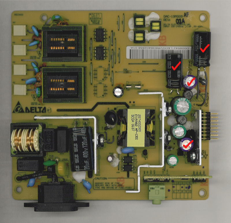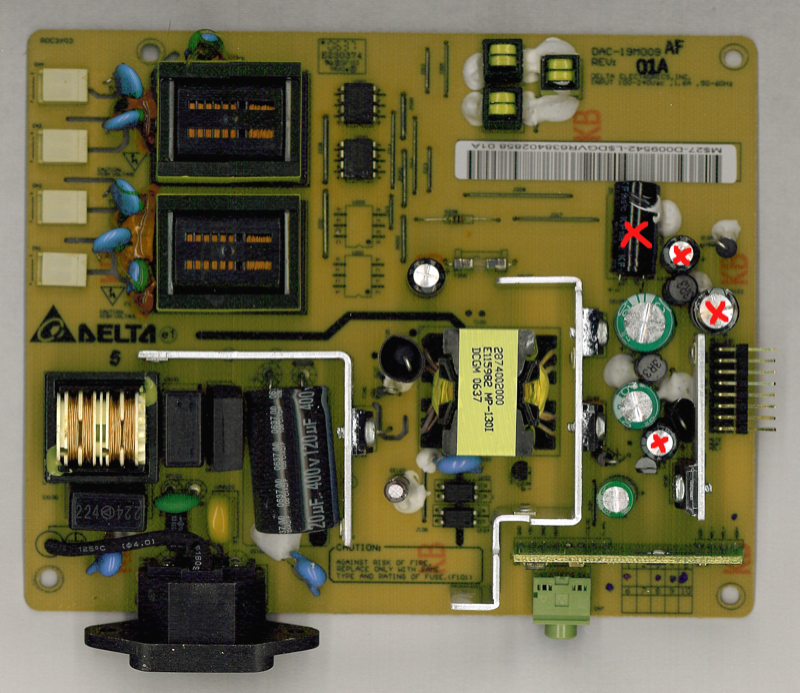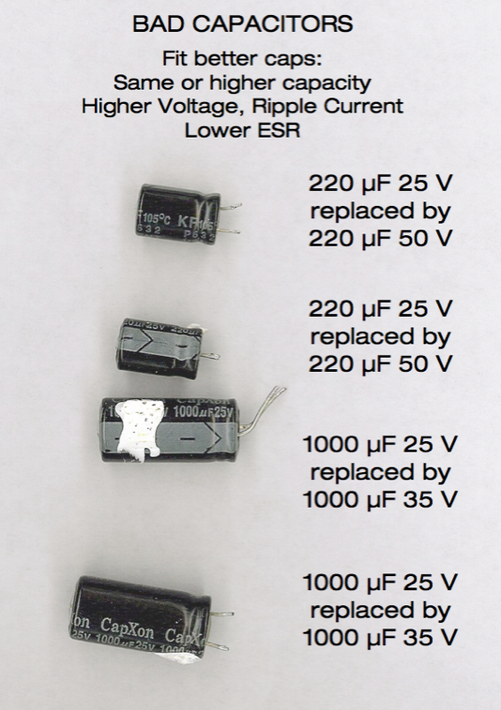 not a good sign. The caps were replaced with higher voltage, better